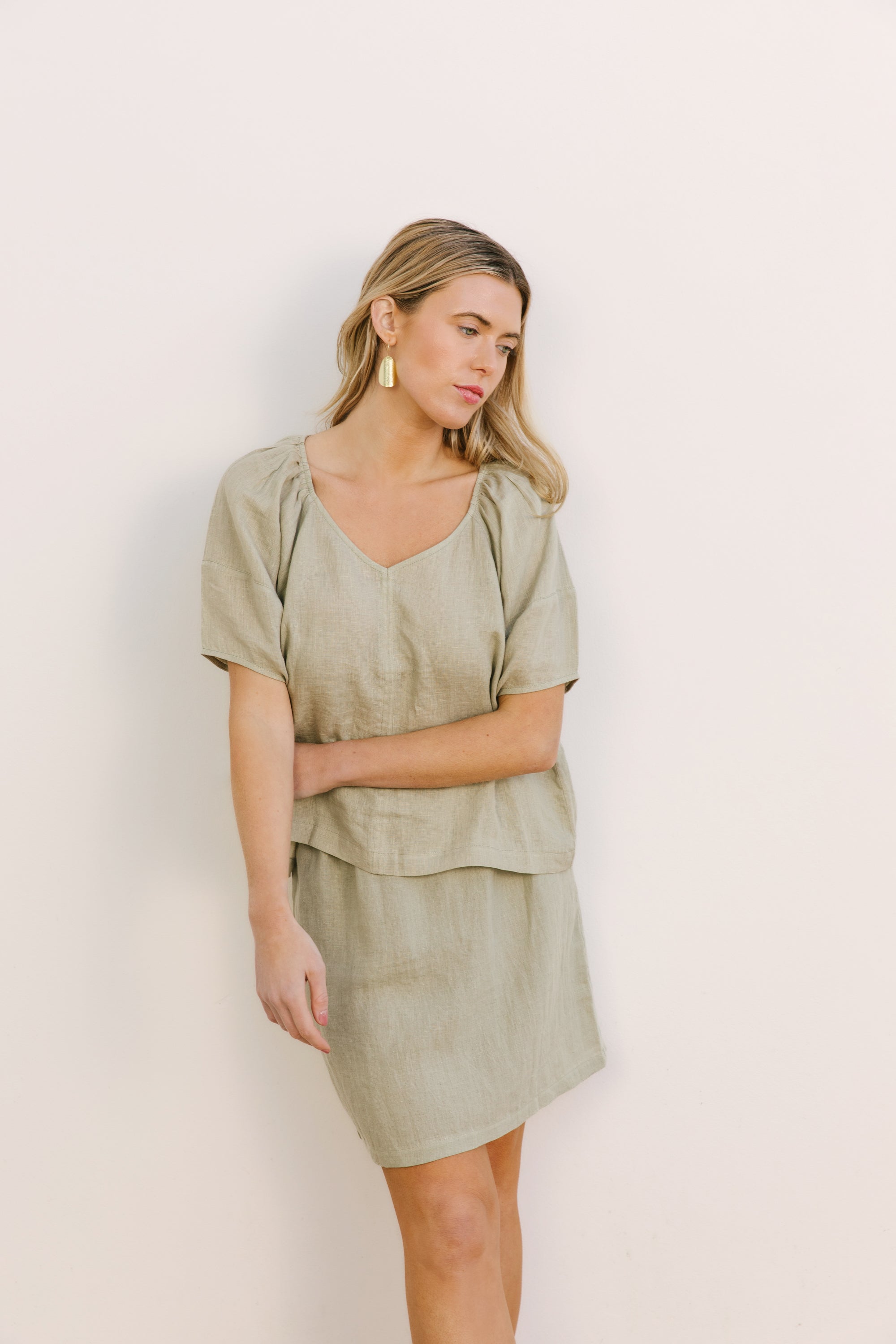 This most-loved linen top features a relaxed fit, short sleeves, and a soft V-neck that is flattering on everyone. It can be French tucked for a tailored look with linen separates or denim, or worn loose for a relaxed look.