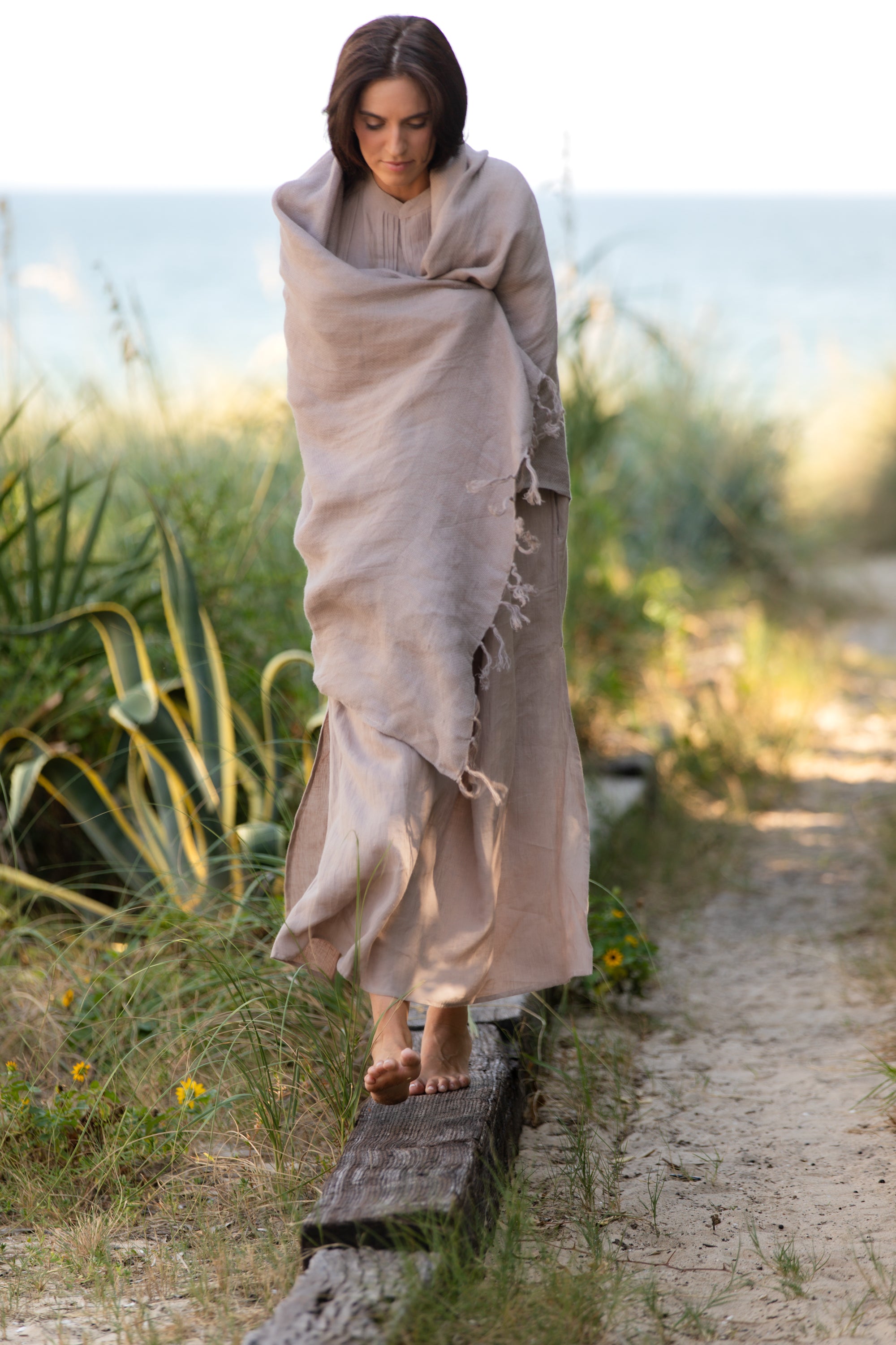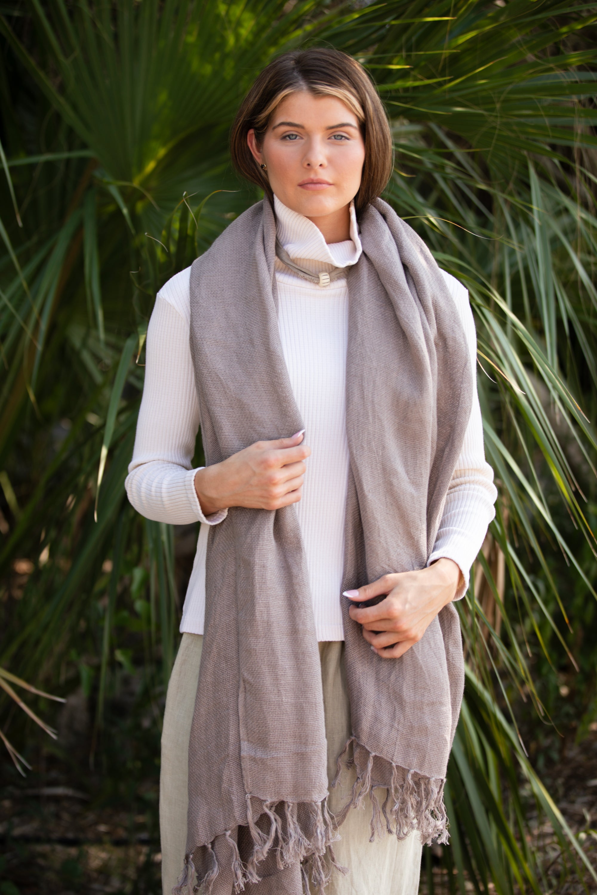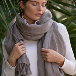 The Bungalow Wrap is an accessory designed for both comfort and style, bringing an easy, relaxed feel to everyday dressing. Crafted in soft linen mesh with a tasseled finish, it layers beautifully at home or while traveling, making it a versatile piece you’ll reach for again and again. Now available in a new colorway, Driftwood.
