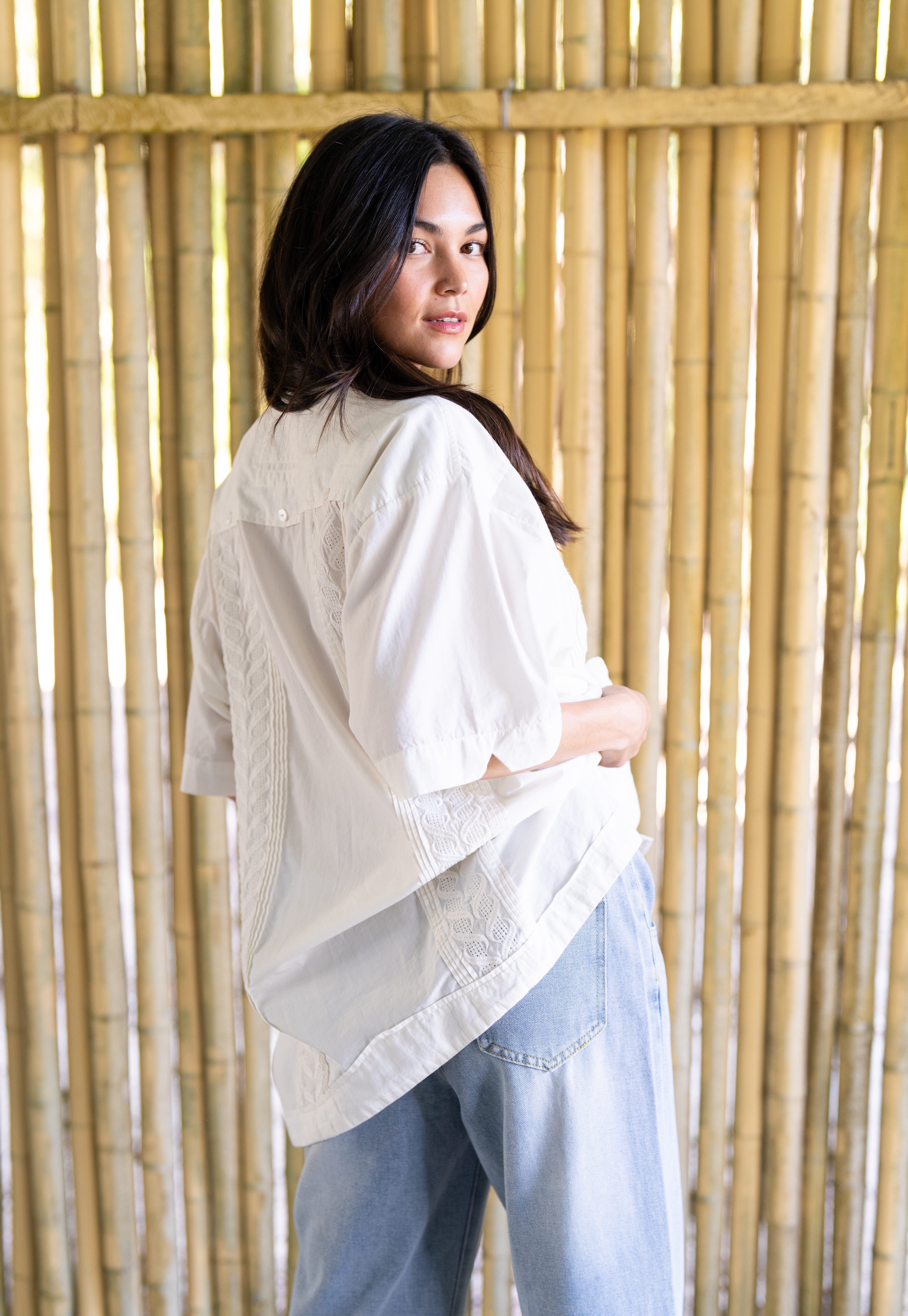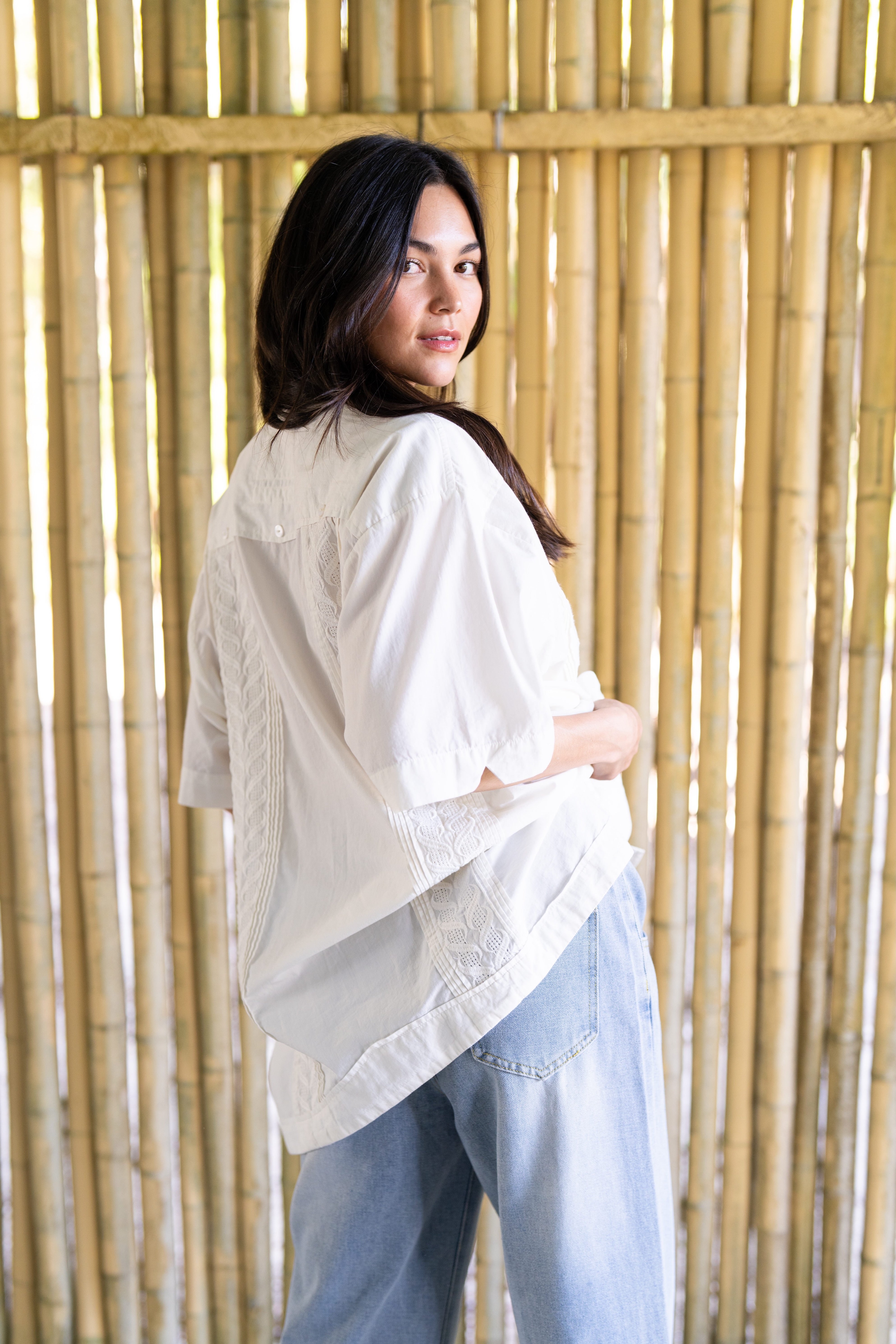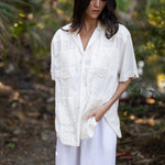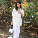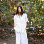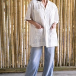 Inspired by the classic shirts worn by Gulf Coast watermen, the Captain’s Shirt is made from 100% breathable cotton with traditional embroidered detailing and natural mother-of-pearl buttons. The fit is intentionally loose and slightly oversized, just like the shirts worn for decades by BECASA founder Emily’s grandfather, Papa Capt. Carl Raffield, a commercial fisherman along Florida’s Gulf Coast. Easy and relaxed, it’s the kind of shirt meant for warm days, salty air, and everyday wear from boat to town.
