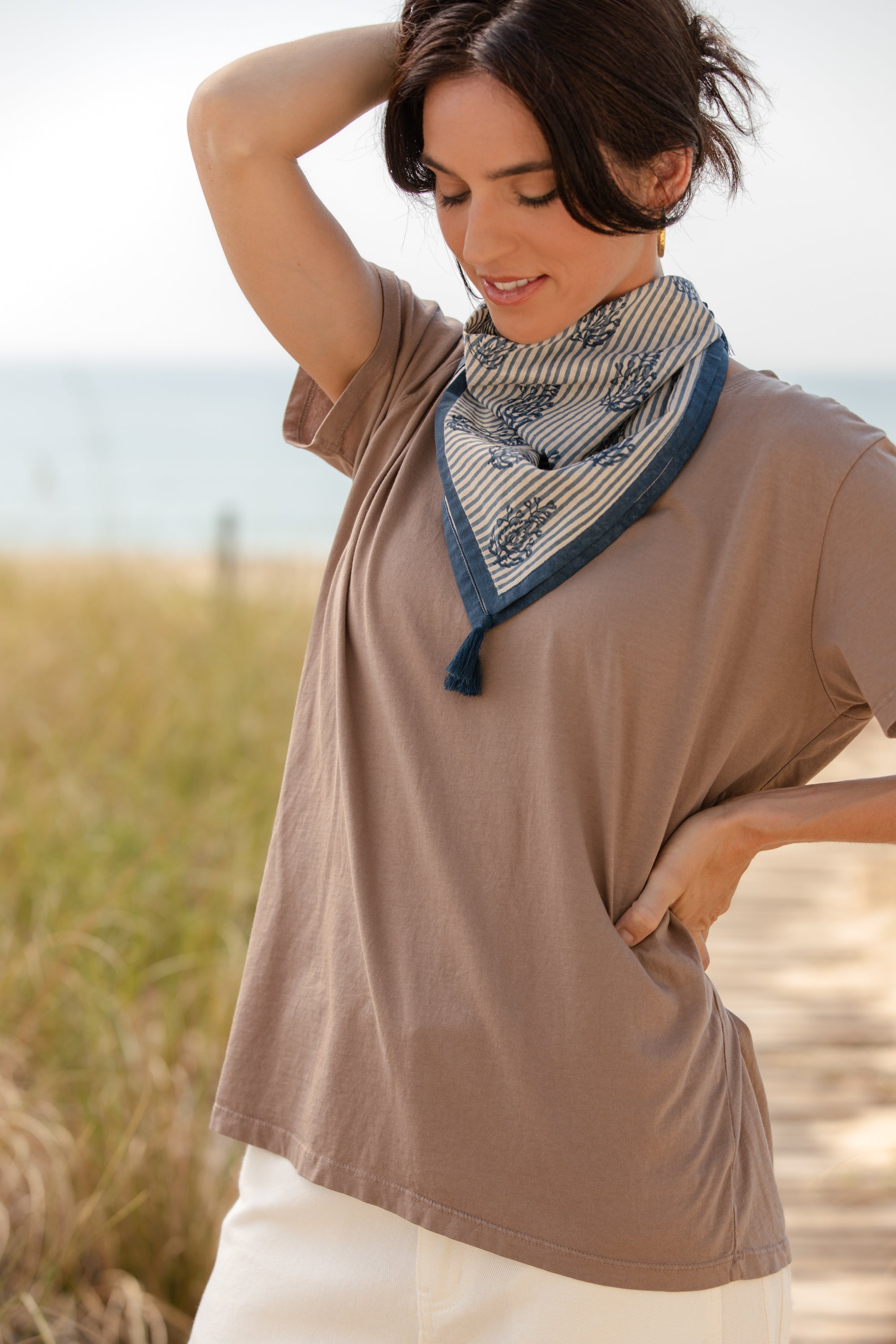 Our BECASA Bandanas are made from soft cotton and printed in custom, nature- inspired patterns and colors. Measuring 20" x 20", it’s designed for versatility — wear it tied in your hair, around your neck, or on your favorite bag. A simple, stylish accent that brings an easy touch of BECASA to your everyday look.