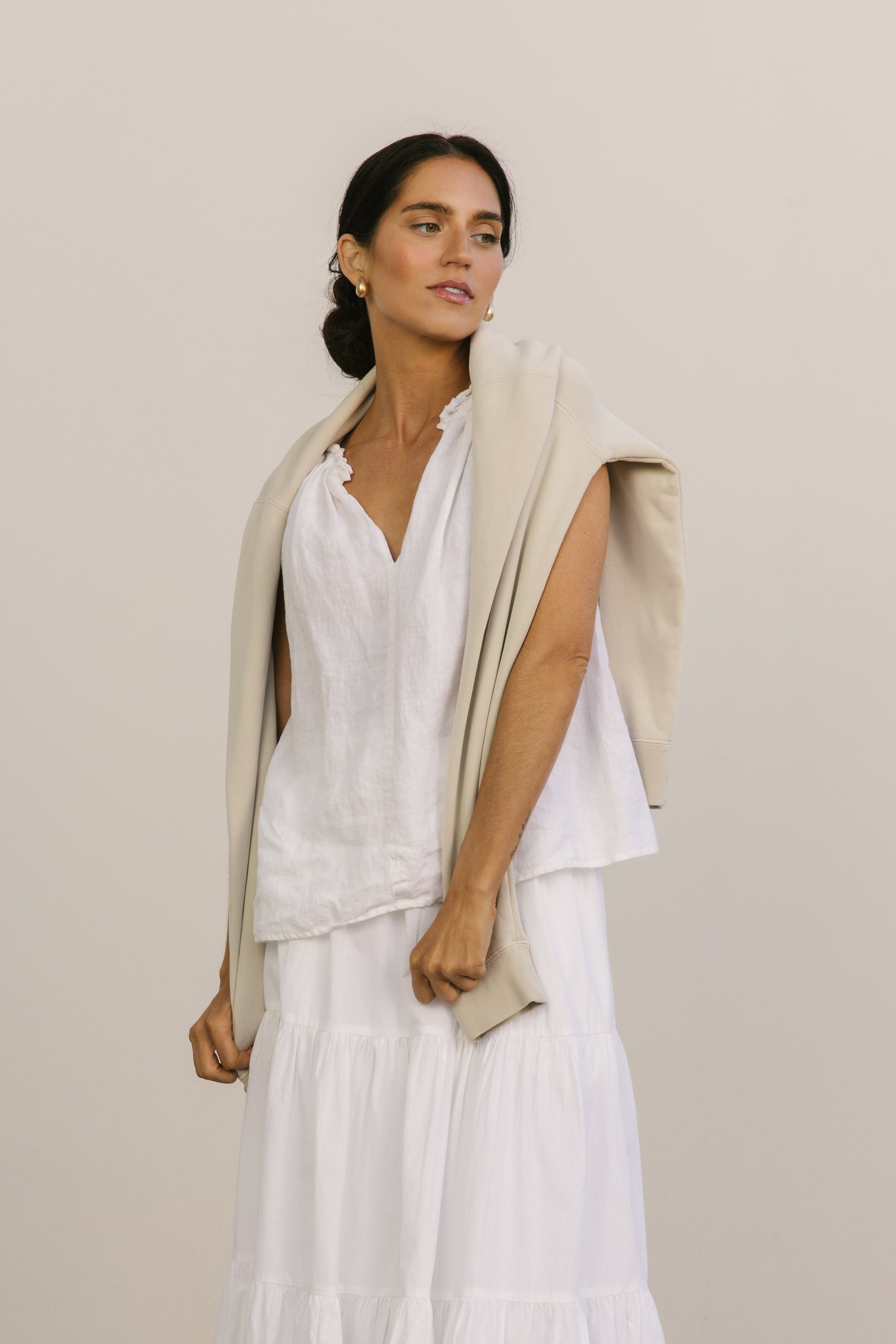 An oversized style, this cotton sweatshirt gets better with every wash. Created as a year-round closet staple, this piece easily packs in your travel bag for that surprising chilly night on vacation, or for a day of errands back home. We think you'll live in it!