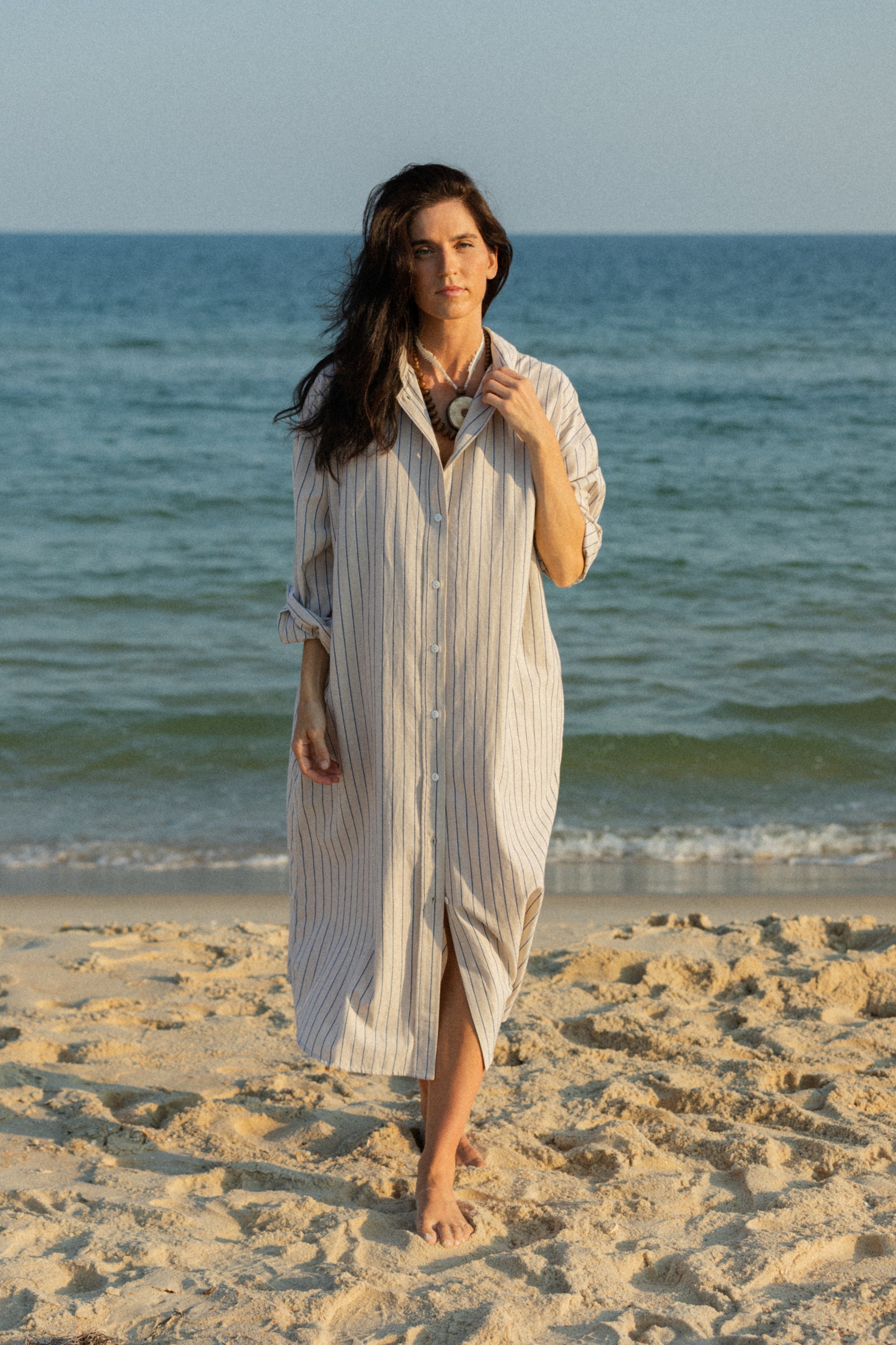 The Easygoing Cotton Maxi Dress takes the much-loved silhouette of our Easygoing Cotton Shirt and reimagines it in a relaxed maxi dress style. Designed with the same classic collar, button front, and tuxedo-style cuffs, it offers an effortless balance of comfort and polish. This maxi dress is versatile enough to wear solo or layered for year-round styling.