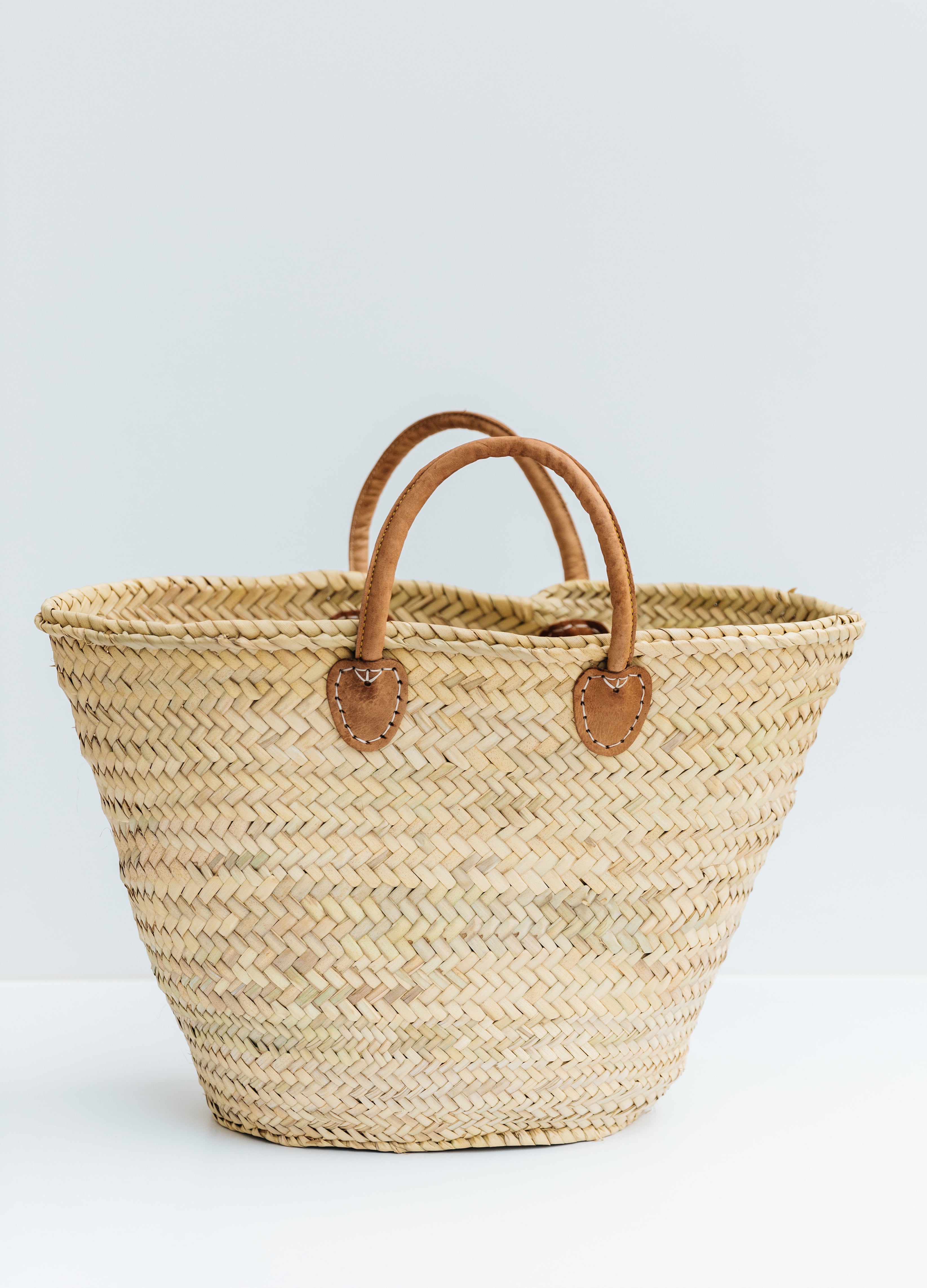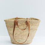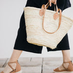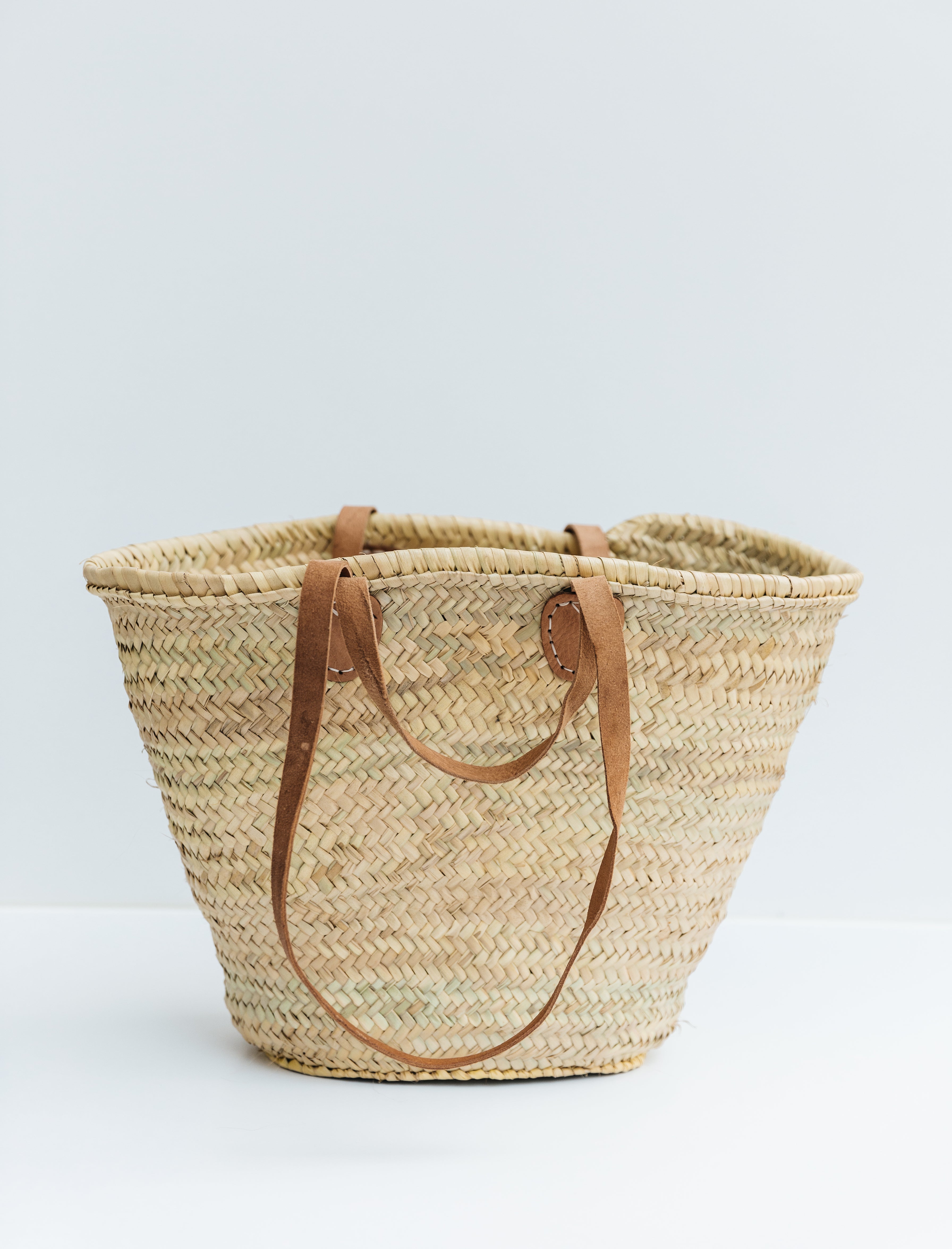 The Classic French market basket-- our signature and timeless straw bag! Our sturdy market tote is handwoven from date palm leaf, with a double-woven top edge for extra sturdy finish.