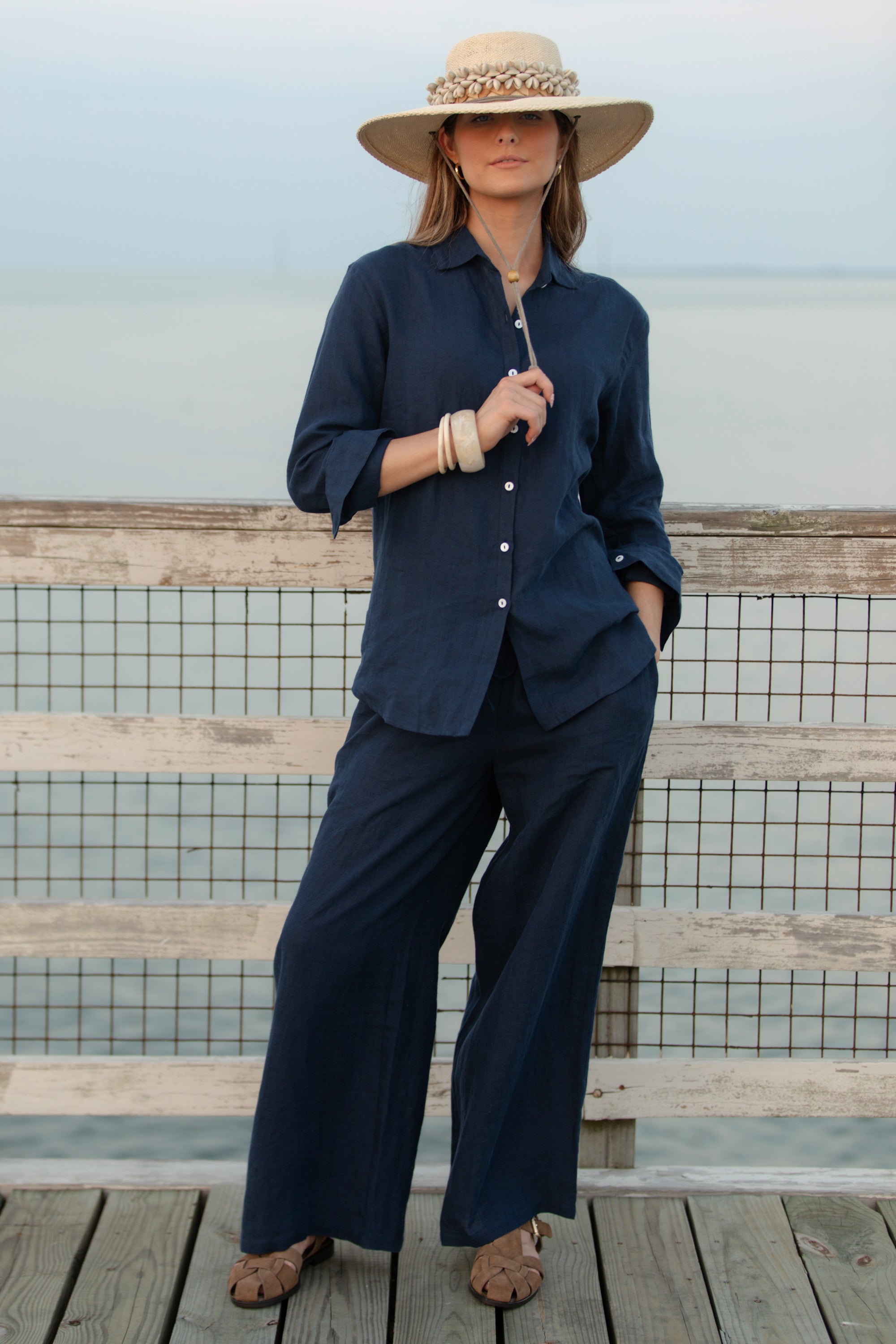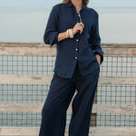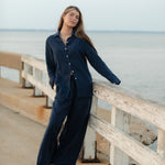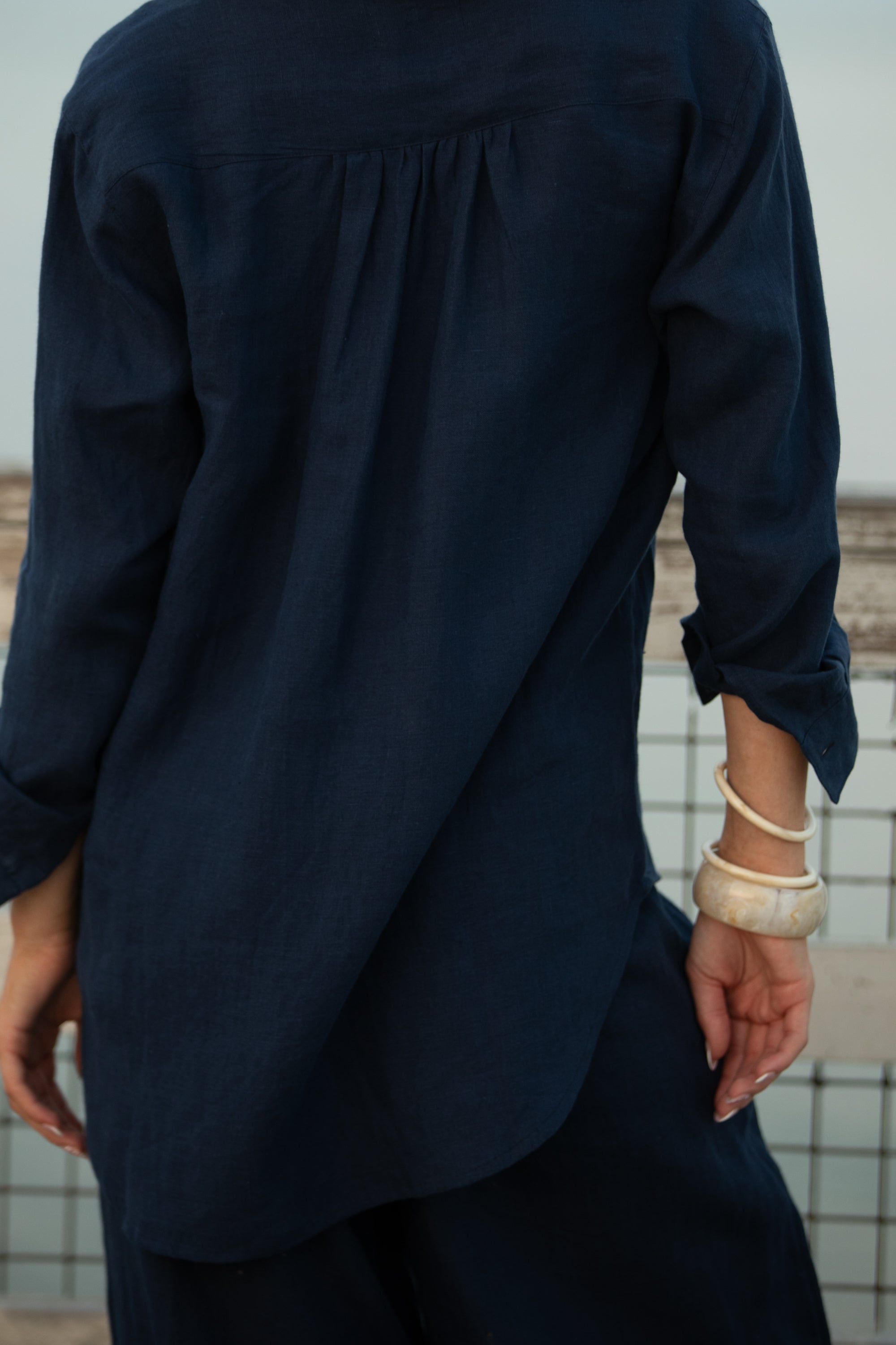 Our Keepsake Button Down, now in True Navy — a modern and organic version of the classic men's button-down shirt. This relaxed-fit shirt features a lengthened shirttail hem making it versatile for any casual occasion. It pairs well with your favorite jeans or can be worn with other statement pieces to create a stylish and effortless look. The Keepsake Button Down is a must-have in every wardrobe.