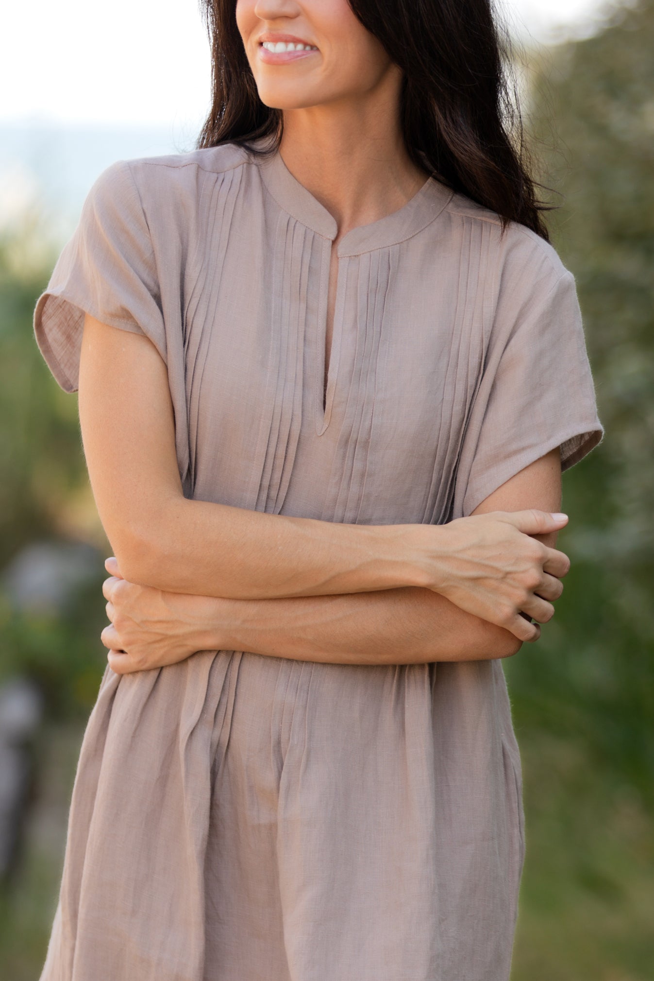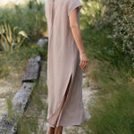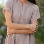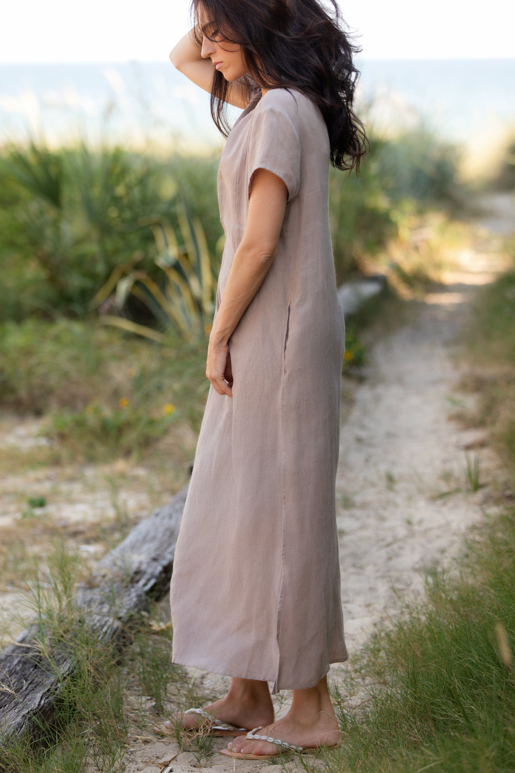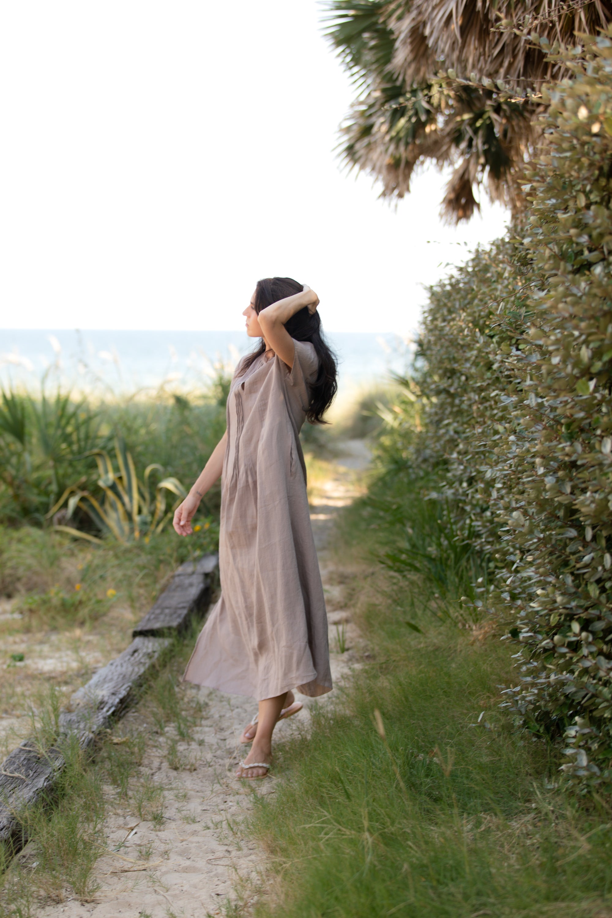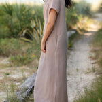 A BECASA favorite is now available in a full-length silhouette. The Lulu Maxi Dress carries over the same loved details of the Lulu Tunic — a soft V neckline, pleated bodice, and easy cap sleeves — now in a flowing maxi style. Designed for both comfort and femininity, it’s a versatile piece that transitions seamlessly from everyday wear to evenings out.