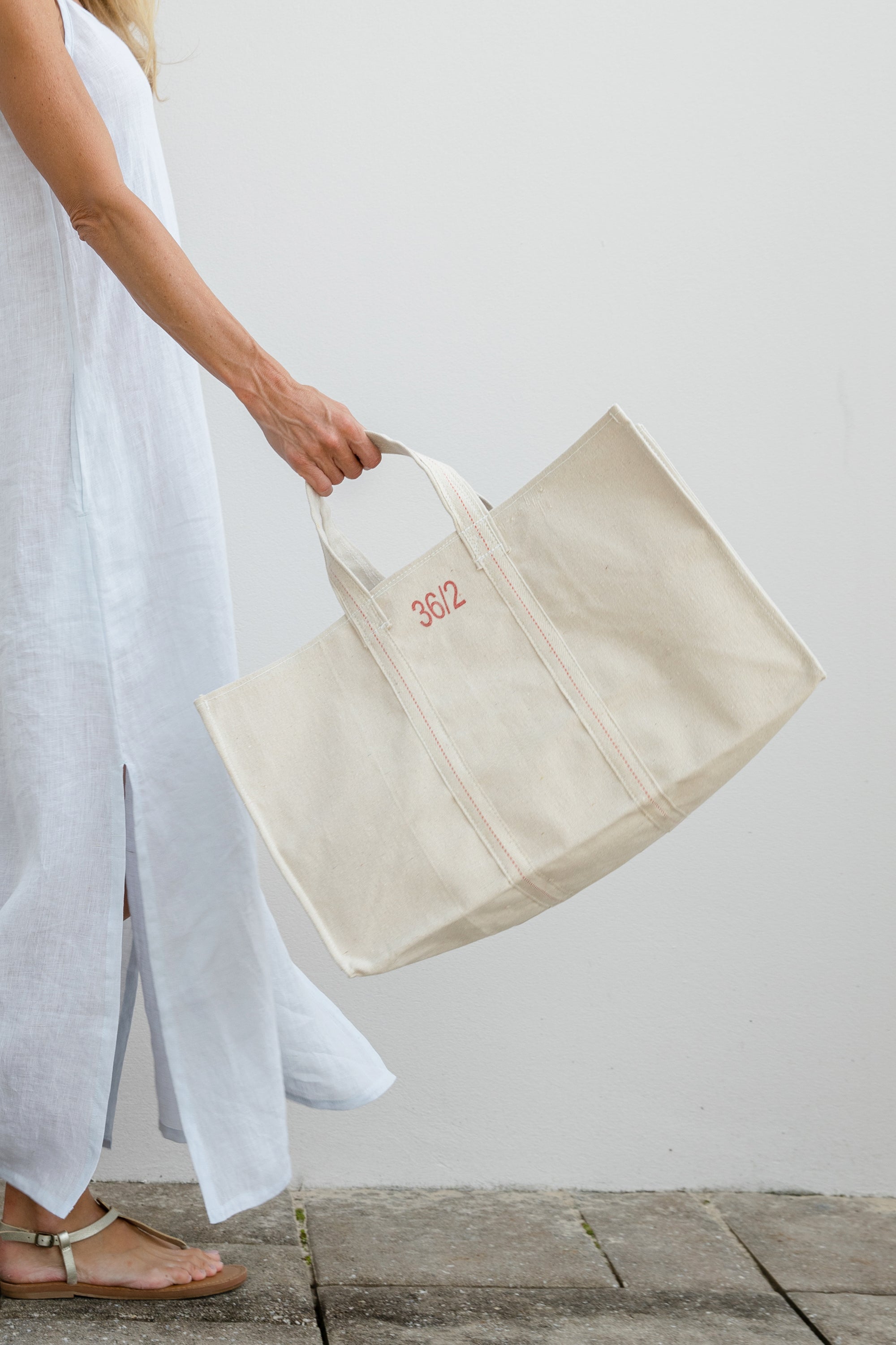 You’ll wonder how you ever lived without this canvas tote. Simple, classic, and incredibly durable, it’s perfect for everyday tasks—whether you’re carrying kids' library books, hitting the farmers market, or packing for a boat day. Each bag is double-stitched by hand to hold up to 100+ pounds, ensuring it’s as tough as it is versatile. The printed numbers are hand-stamped to indicate size.