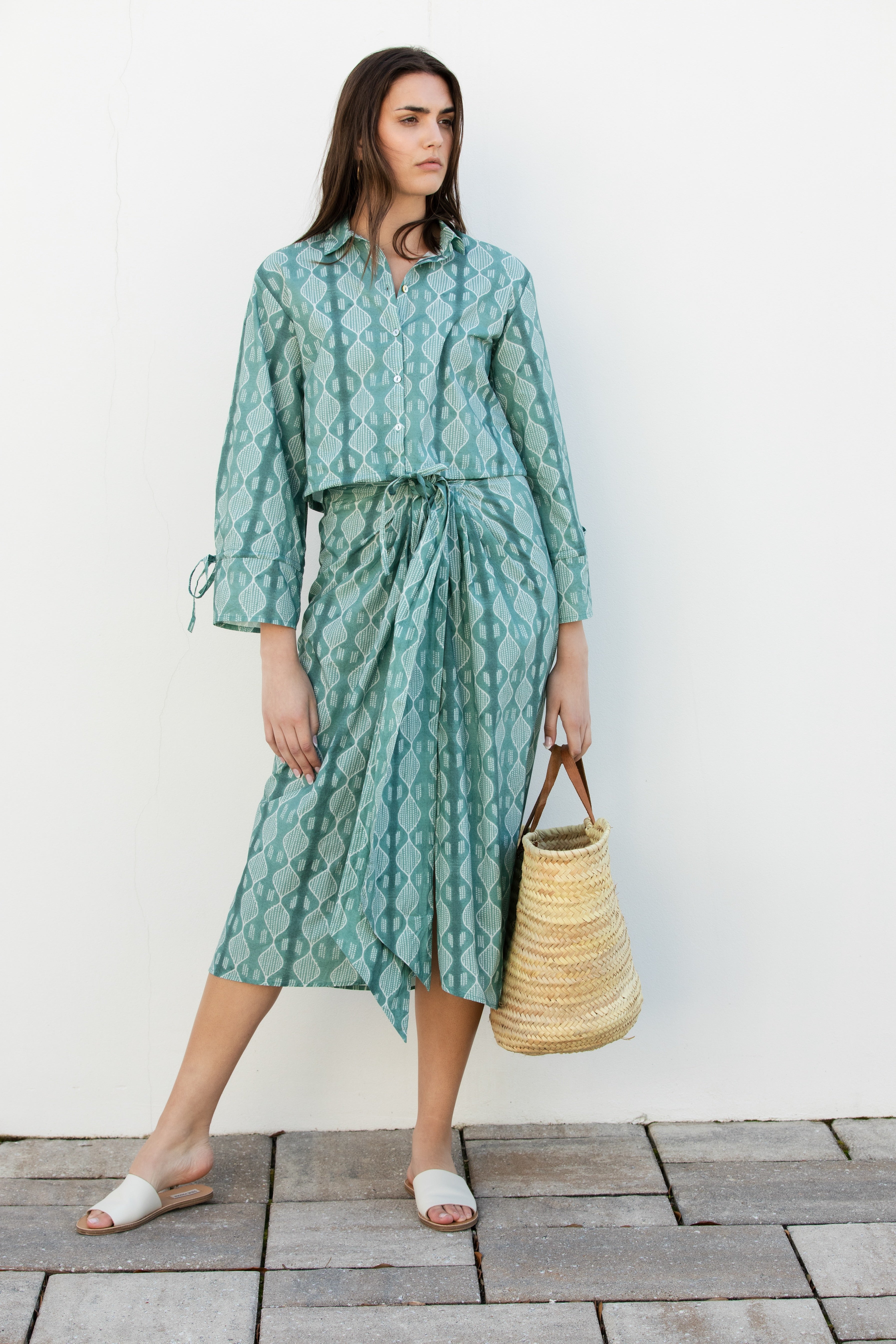 Timeless and easy, the Sail Button-Up is your year-round favorite for effortless, coastal-inspired dressing. Made from soft, breathable Indian cotton with thoughtful ribbon details, it’s designed to wear loose at the waist or cinched for a flattering, cropped fit. Whether layered into cooler seasons or worn breezy on warm days, it’s a piece that moves with you.